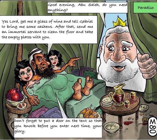 In September 2016 Nahid Hattar, a Jordanian writer, who was charged with offending Islam after allegedly sharing this satirical cartoon on his Facebook page was hit by three bullets outside the court in the capital Amman where he was standing trial. He died.